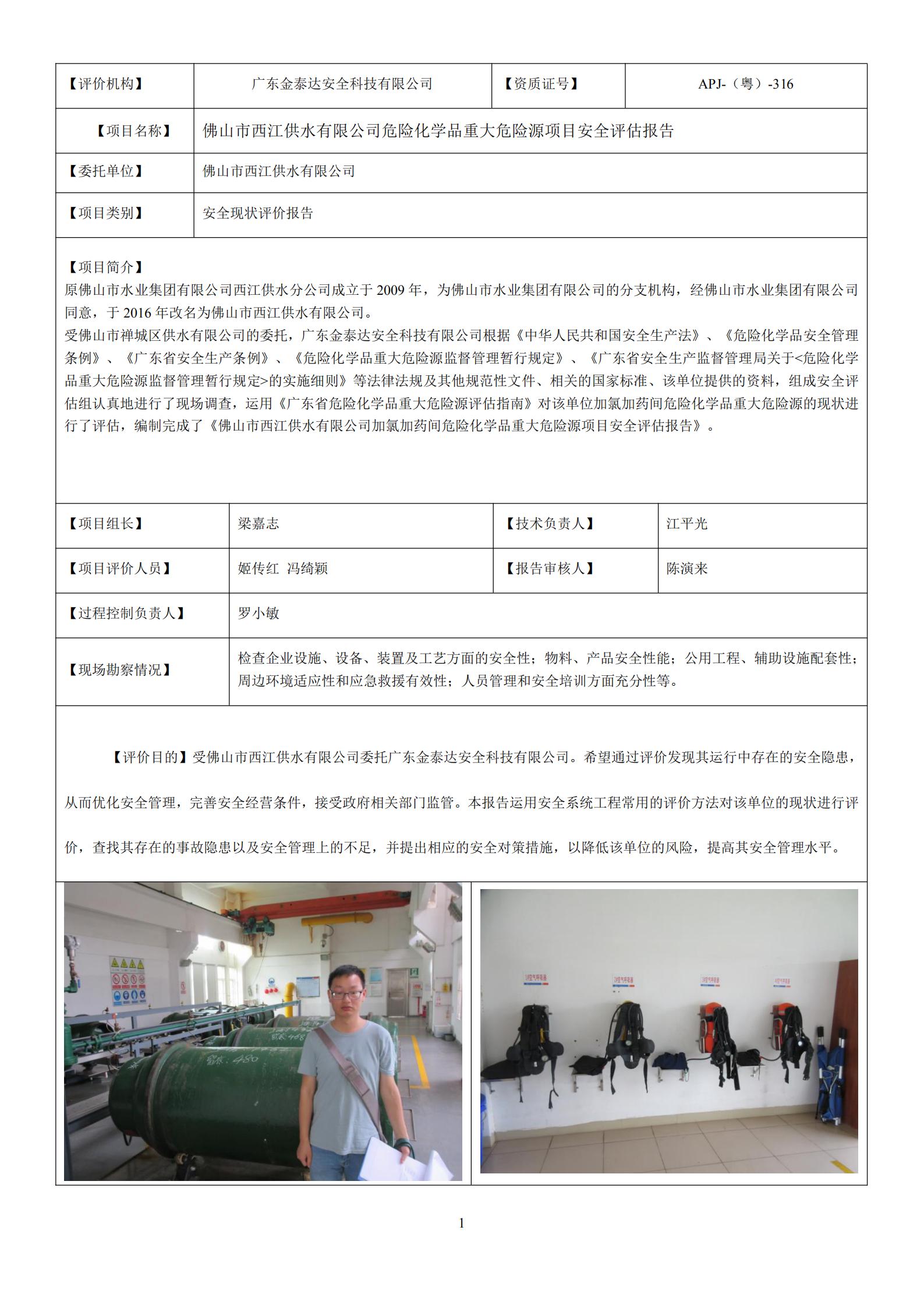 18251佛山市西江供水有限公司危险化学品重大危险源项目安全评估报告