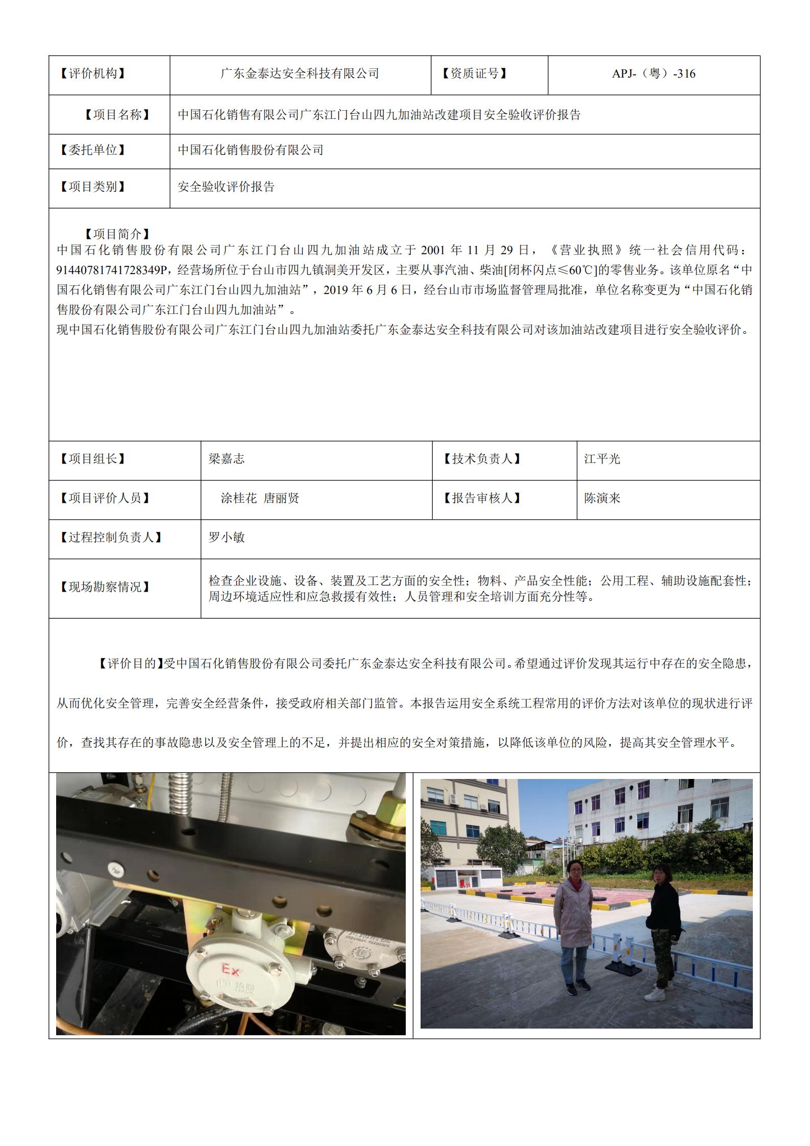 19468(1)中国石化销售有限公司广东江门台山四九加油站改建项目安全验收评价报告