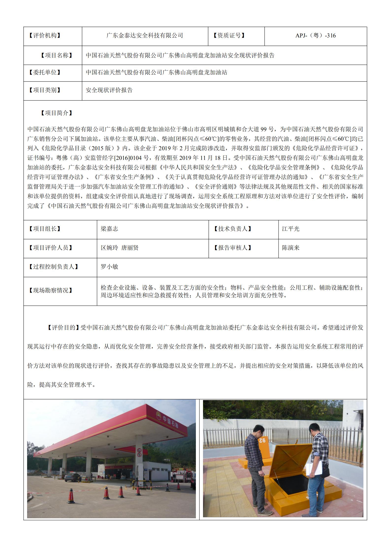 19683中国石油天然气股份有限公司广东佛山高明盘龙加油站安全现状评价报告