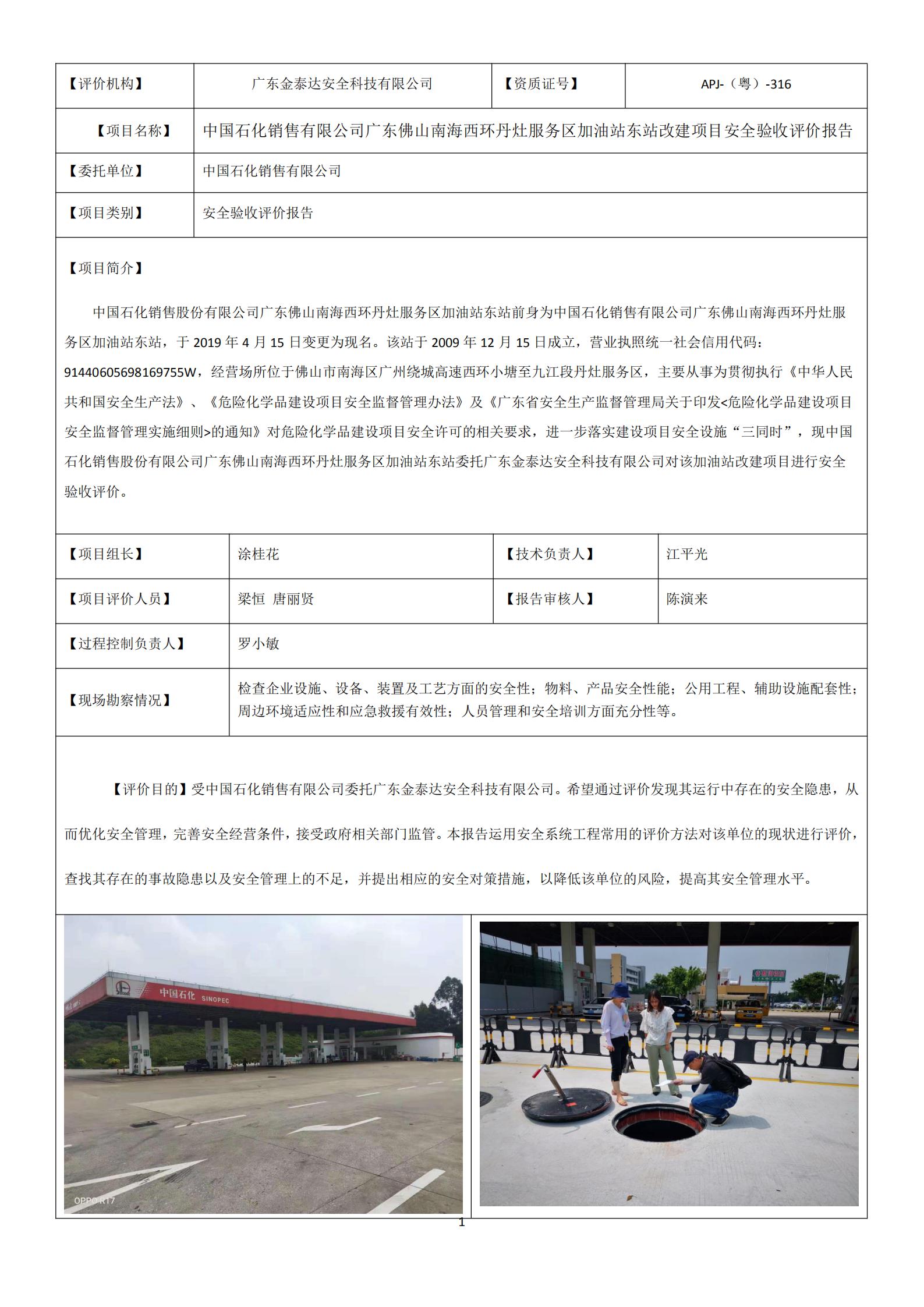 19706中国石化销售有限公司广东佛山南海西环丹灶服务区加油站东站改建项目安全验收评价报告