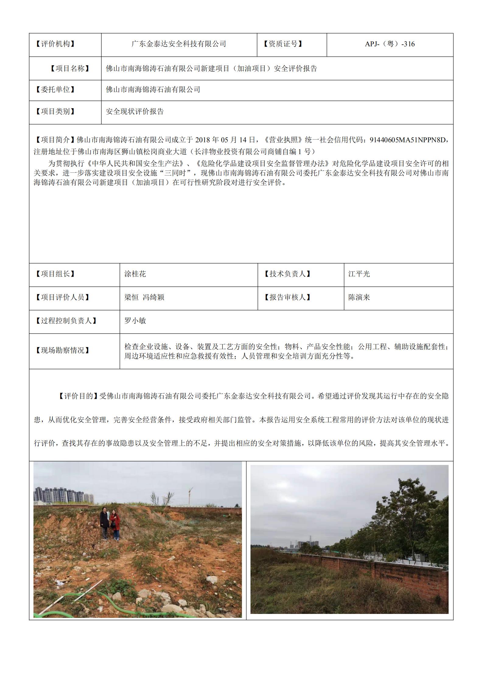 20055佛山市南海锦涛石油有限公司新建项目(加油项目)安全评价报告