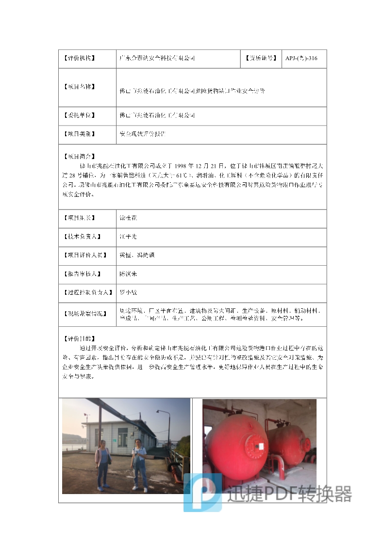 佛山市兆能石油化工有限公司危险货物港口作业F19906(1815)
