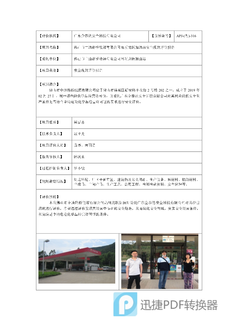 佛山市中油路桥能源有限公司高明龙跃加油站安全现状评价报告F20387(2)