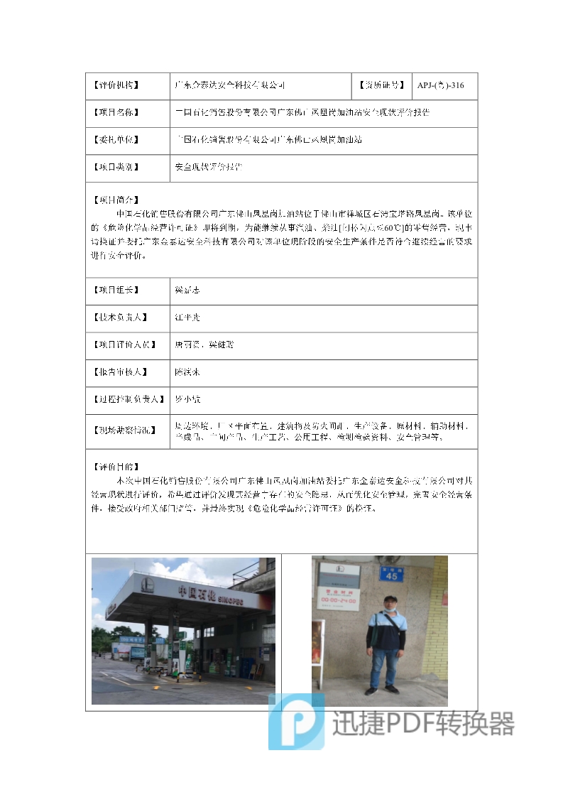 中国石化销售股份有限公司广东佛山凤凰岗加油站安全现状评价报告F20037(42)