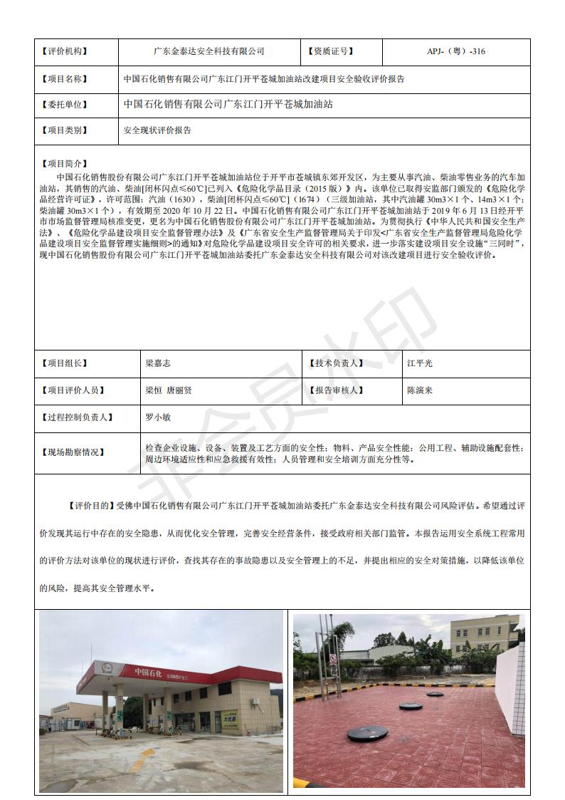 19153(1)中国石化销售有限公司广东江门开平苍城加油站改建项目安全验收评价报告