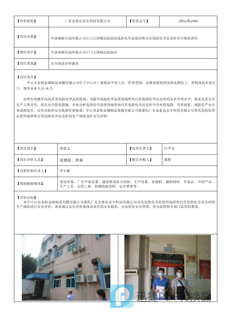 危化2020年8月24日F20137中油碧辟石油有限公司江门大泽顺达加油站安全现状评价