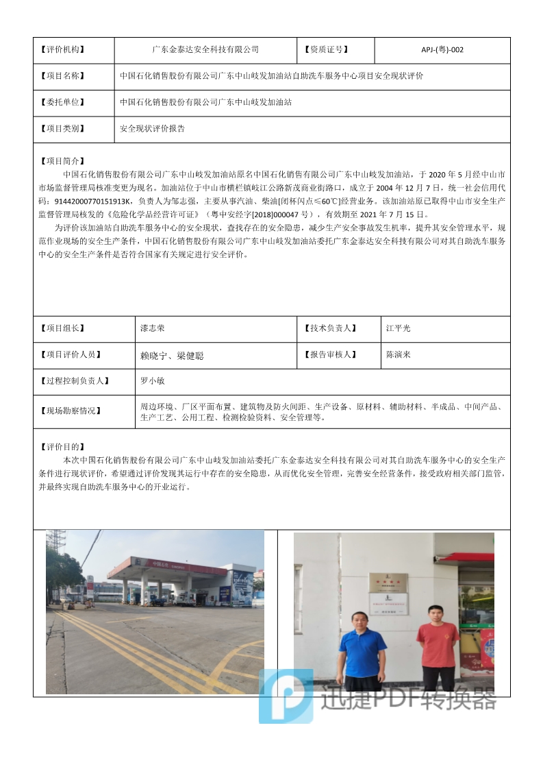 危化2020年12月2日F20533(21)中国石化销售股份有限公司广东中山岐发加油站安全现状评价