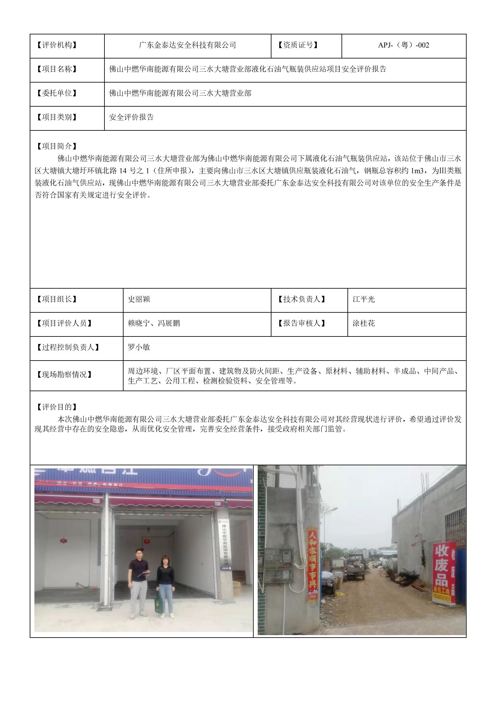 F21066佛山中燃华南能源有限公司三水大塘营业部现状评价