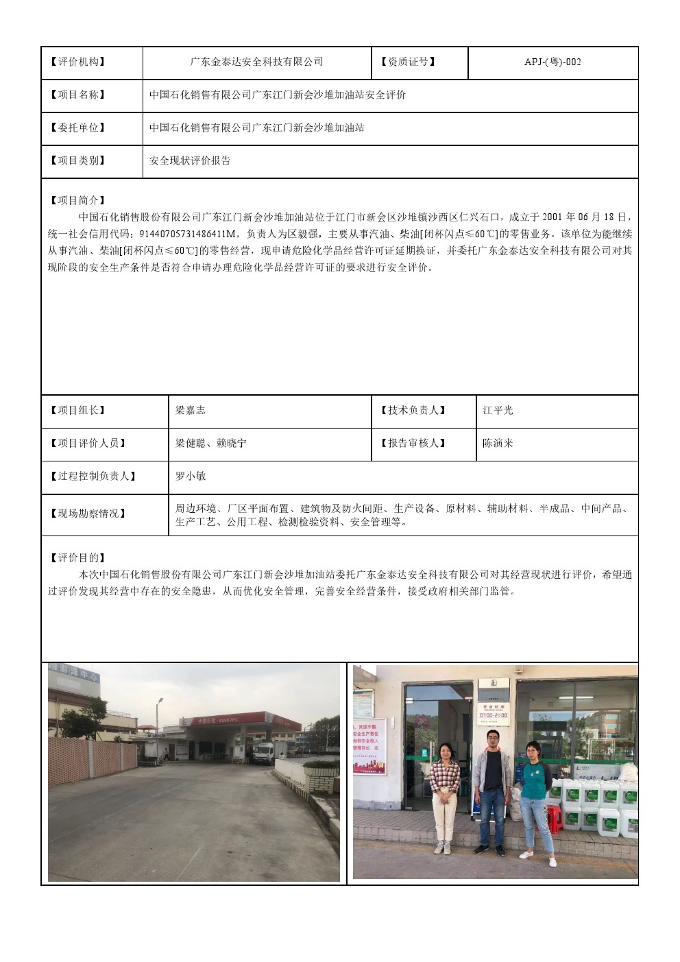 危化-F20038(23)中国石化销售股份有限公司广东江门新会沙堆加油站现状评价