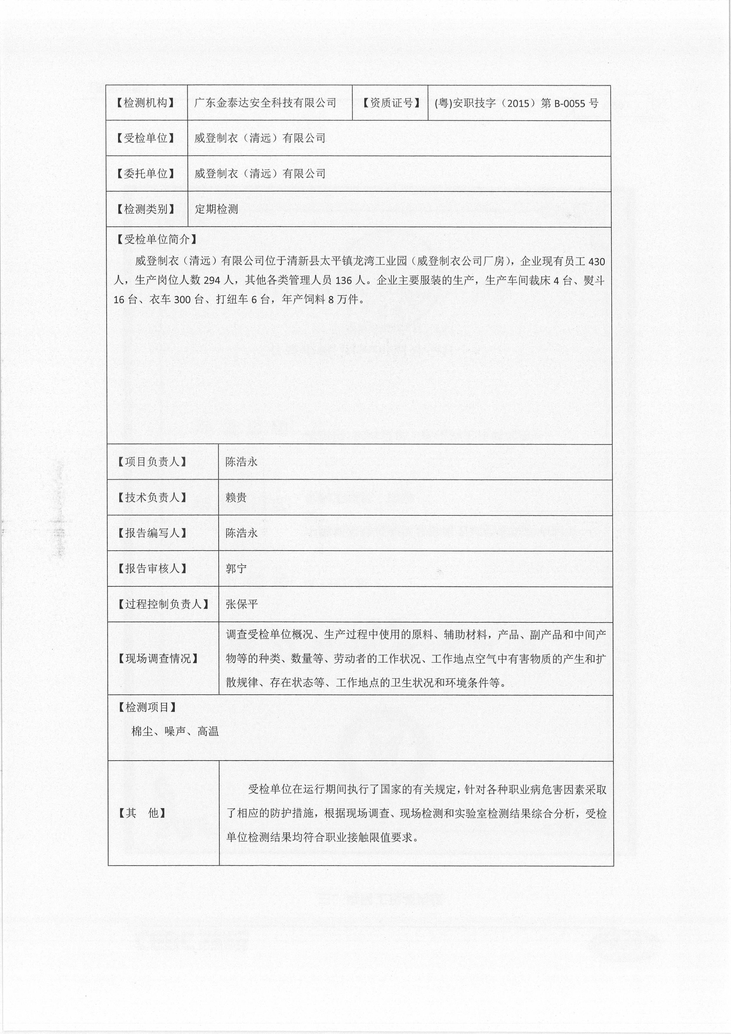 威登制衣(清远)有限公司