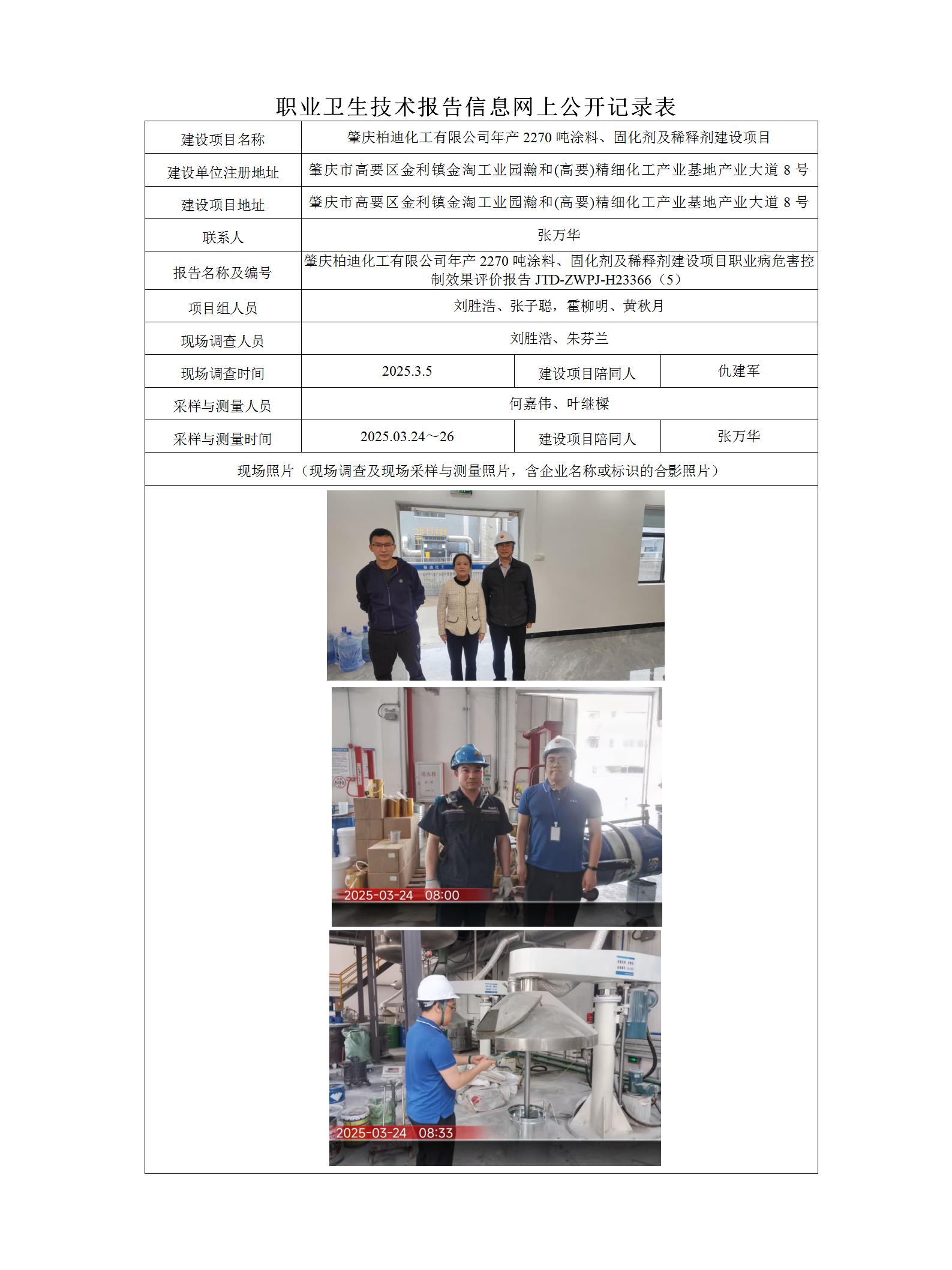 职业卫生-H23366(5)肇庆柏迪化工有限公司年产2270吨涂料、固化剂及稀释剂建设项目控制效果评价
