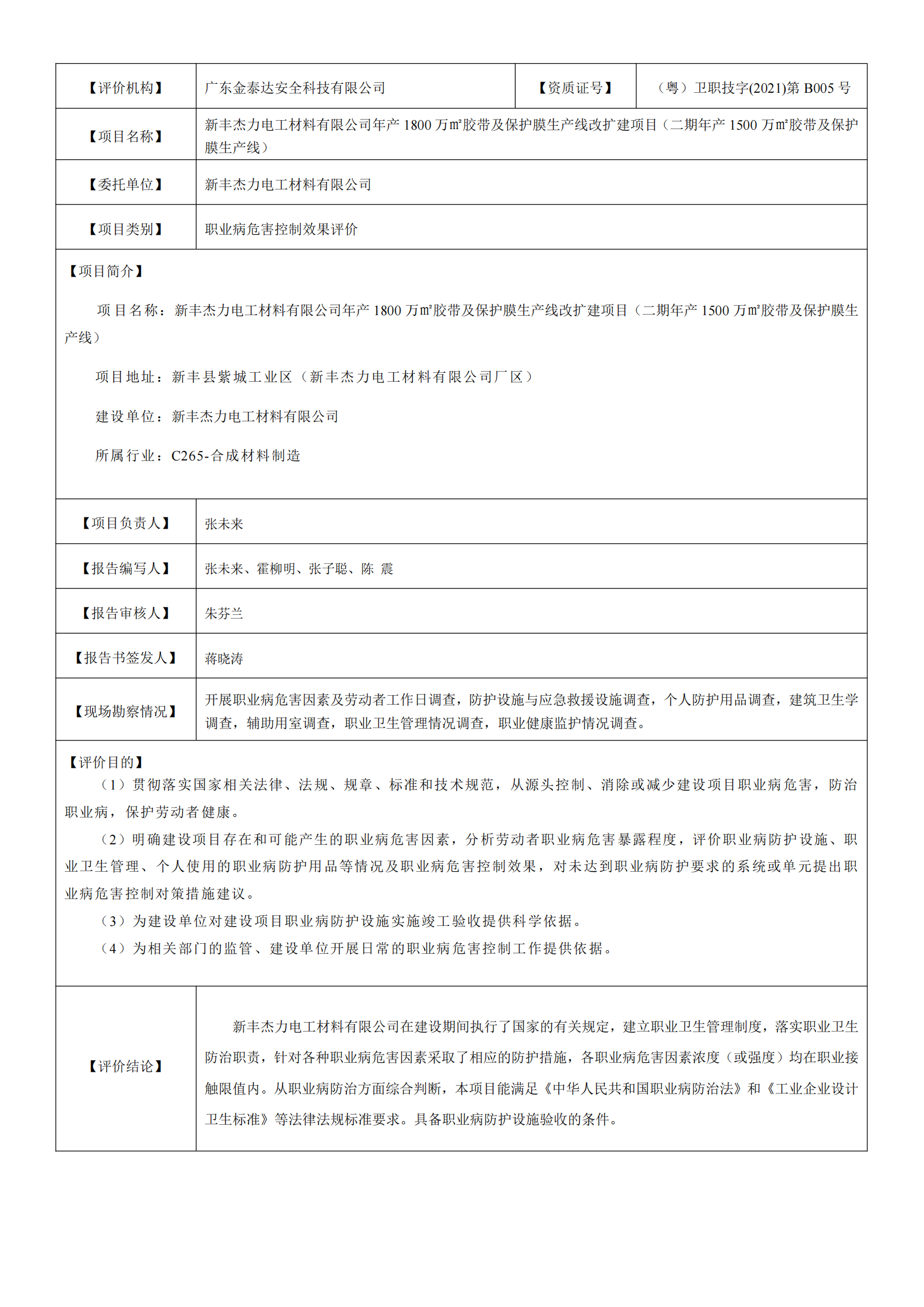 职业卫生-H23567(9) 新丰杰力电工材料有限公司-控制效果评价