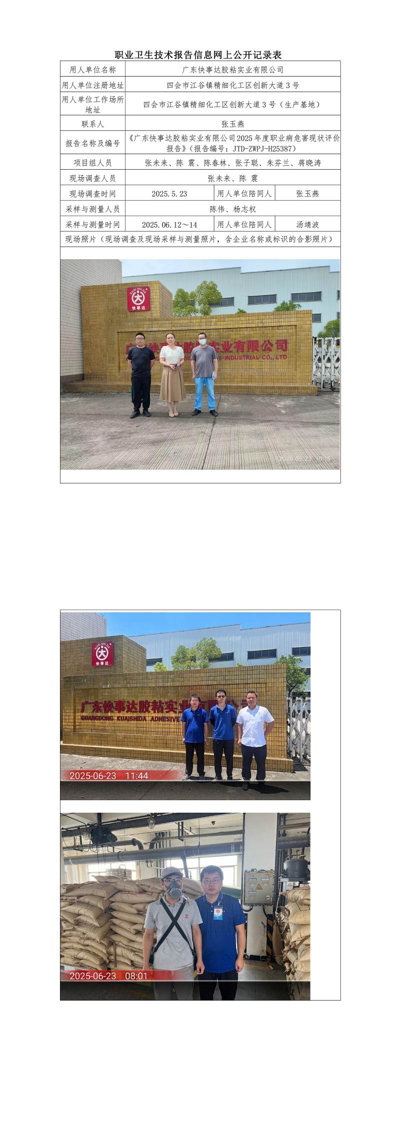 职业卫生-H25387广东快事达胶粘实业有限公司-现状评价