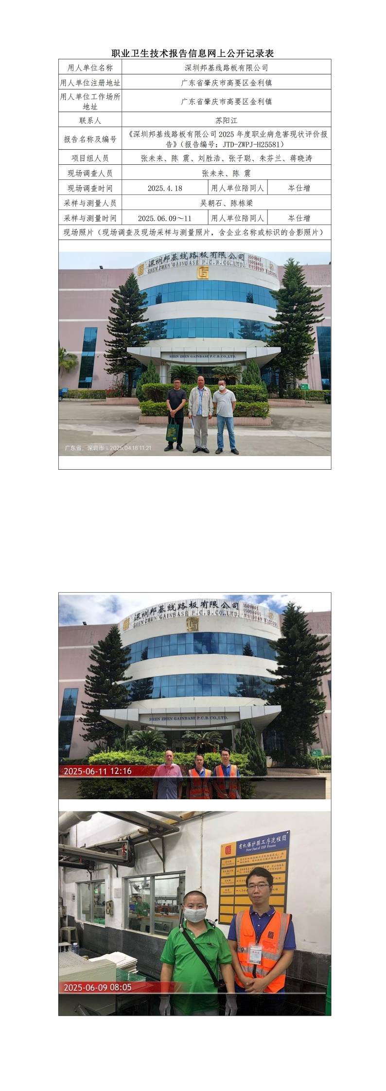 职业卫生-H25342深圳邦基线路板有限公司-现状评价