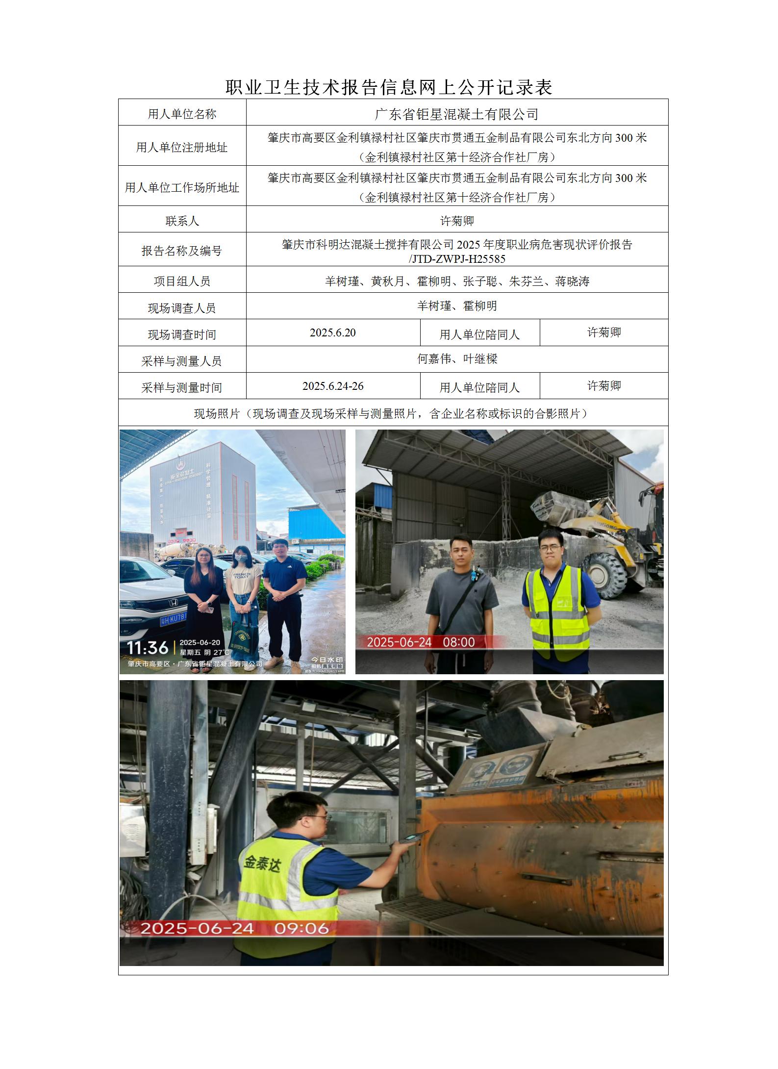 职业卫生-H25585广东省钜星混凝土有限公司现状评价