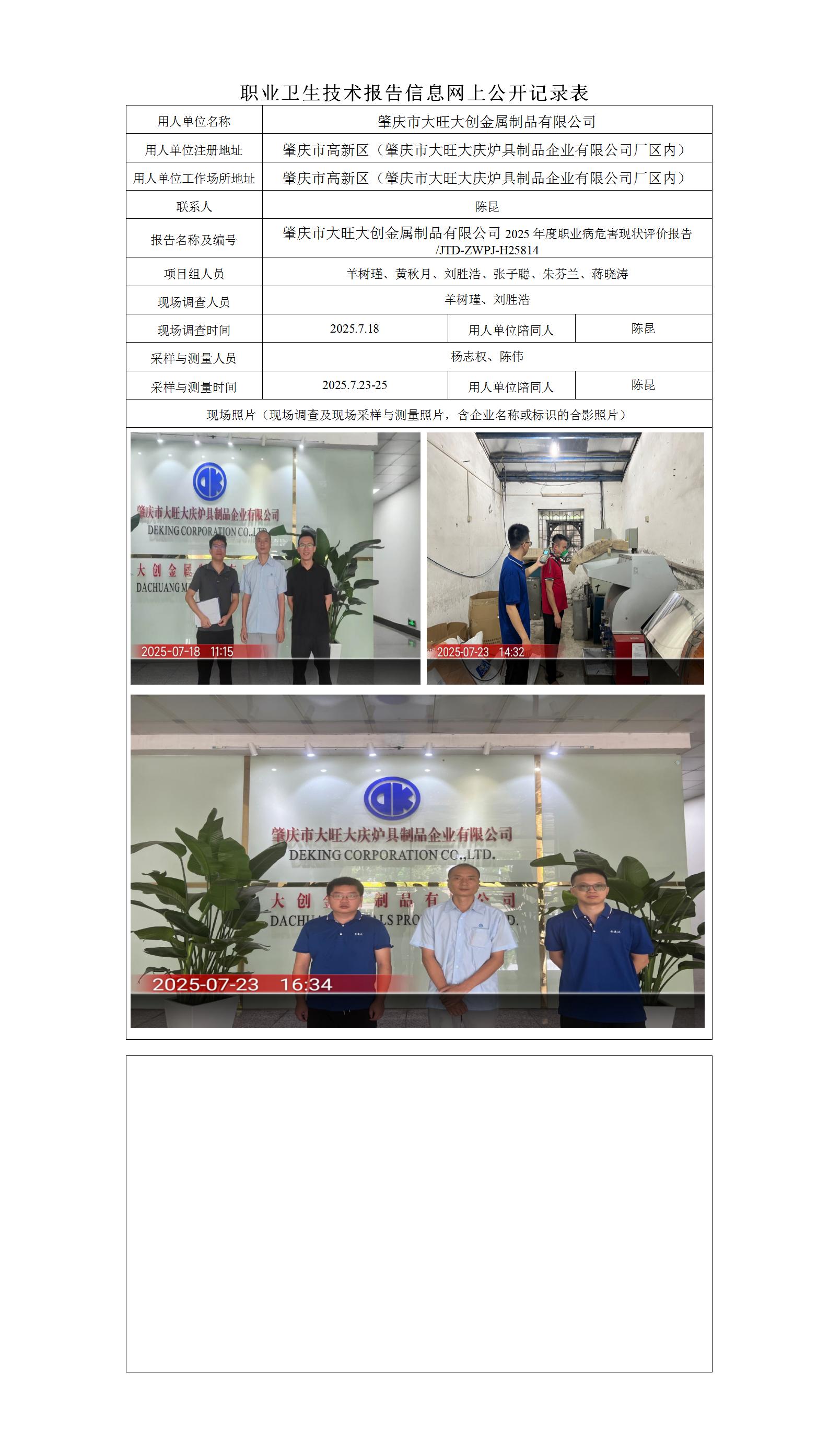 职业卫生-H25814肇庆市大旺大创金属制品有限公司现状评价