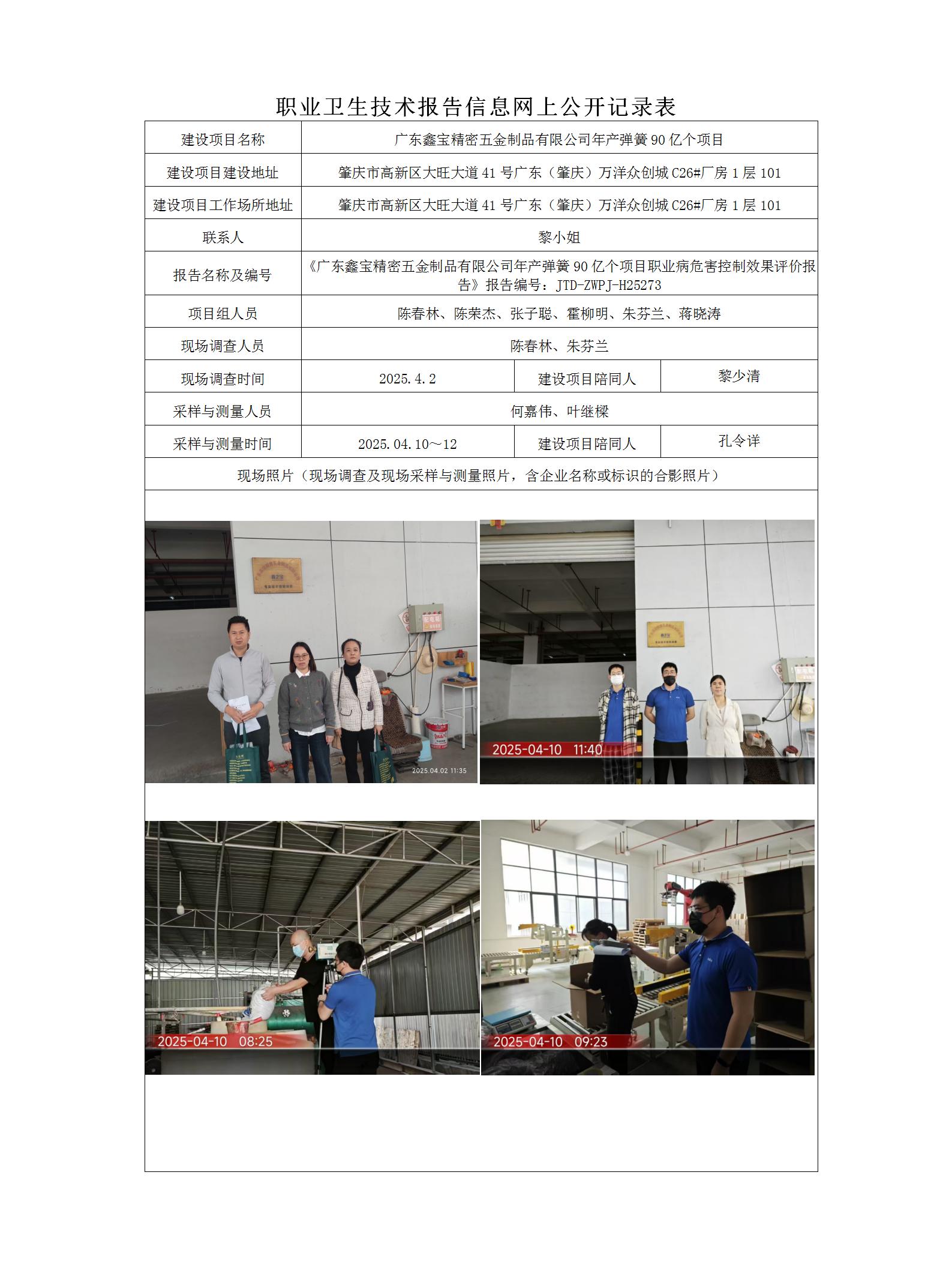 职业卫生-H25273广东鑫宝精密五金制品有限公司控制效果评价公示