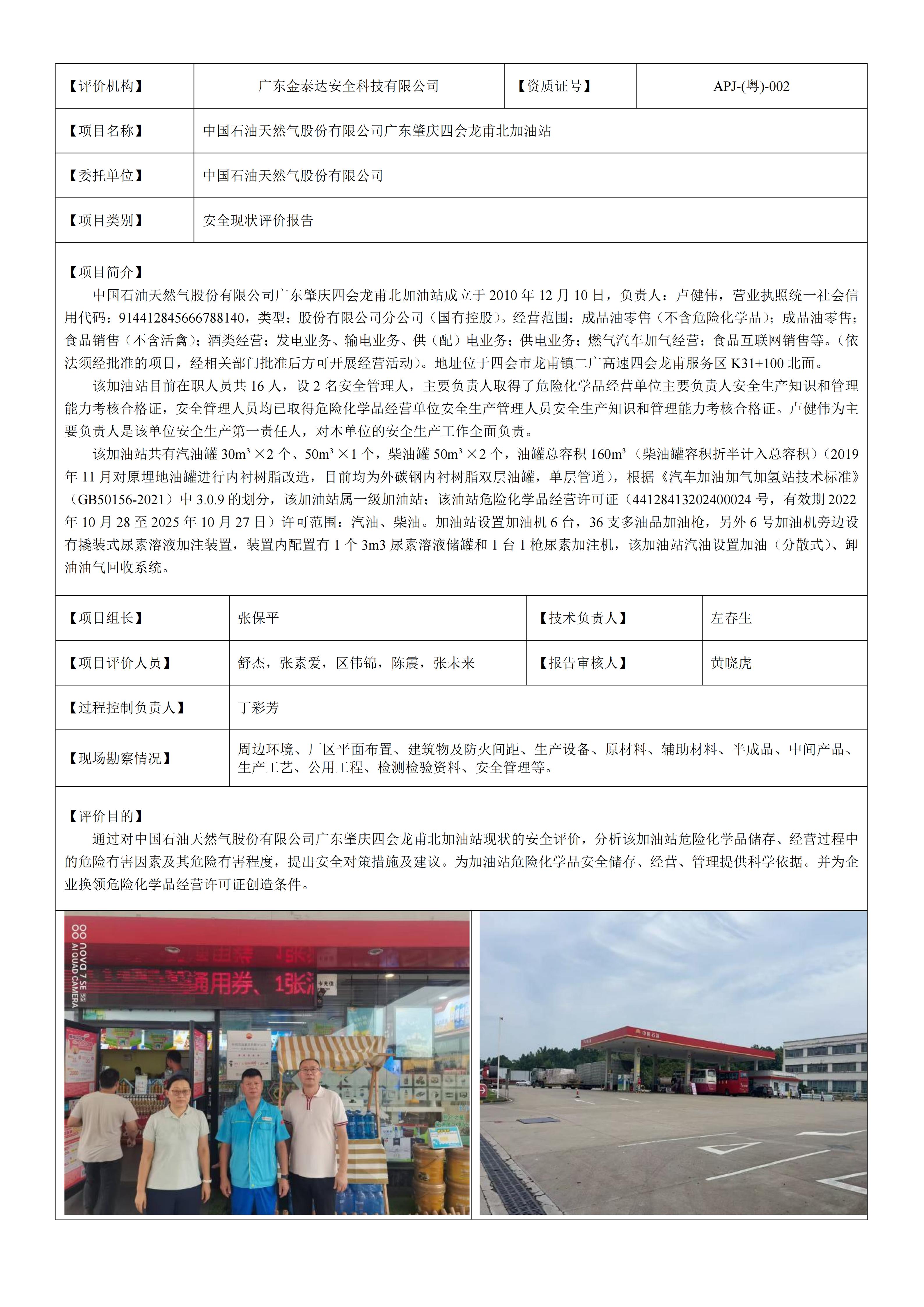 中国石油天然气股份有限公司广东肇庆四会龙甫北加油站-安全现状评价