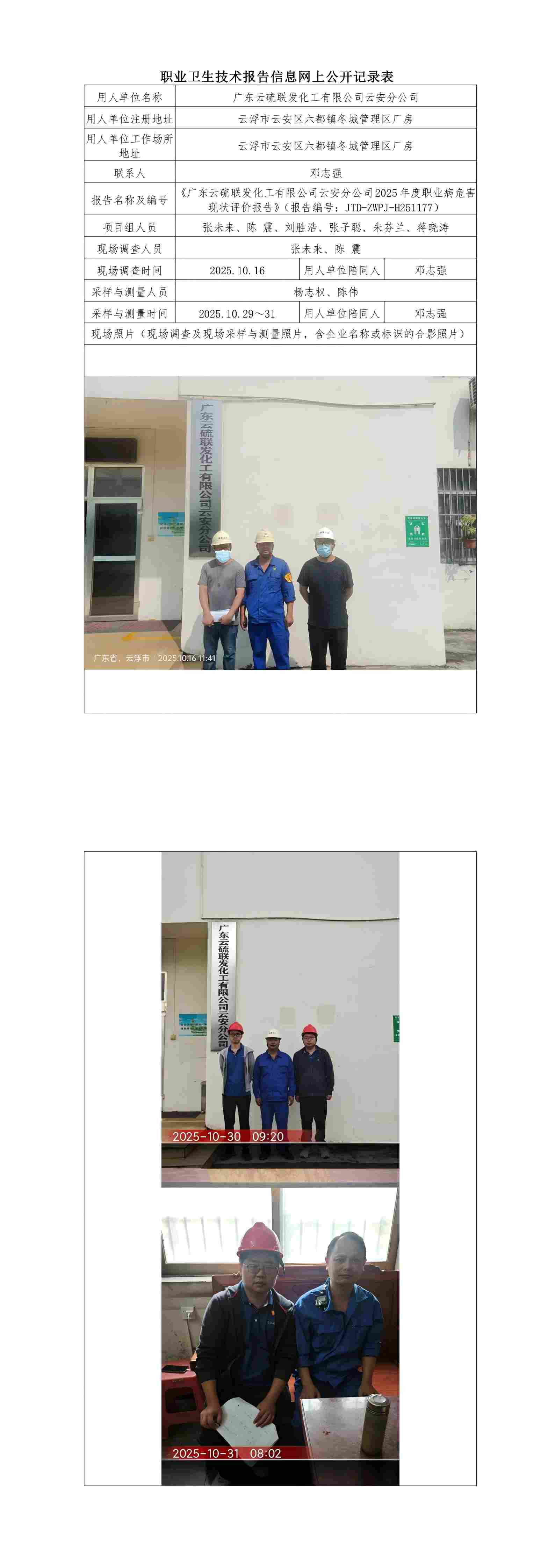 职业卫生-H251177广东云硫联发化工有限公司云安分公司-现状评价