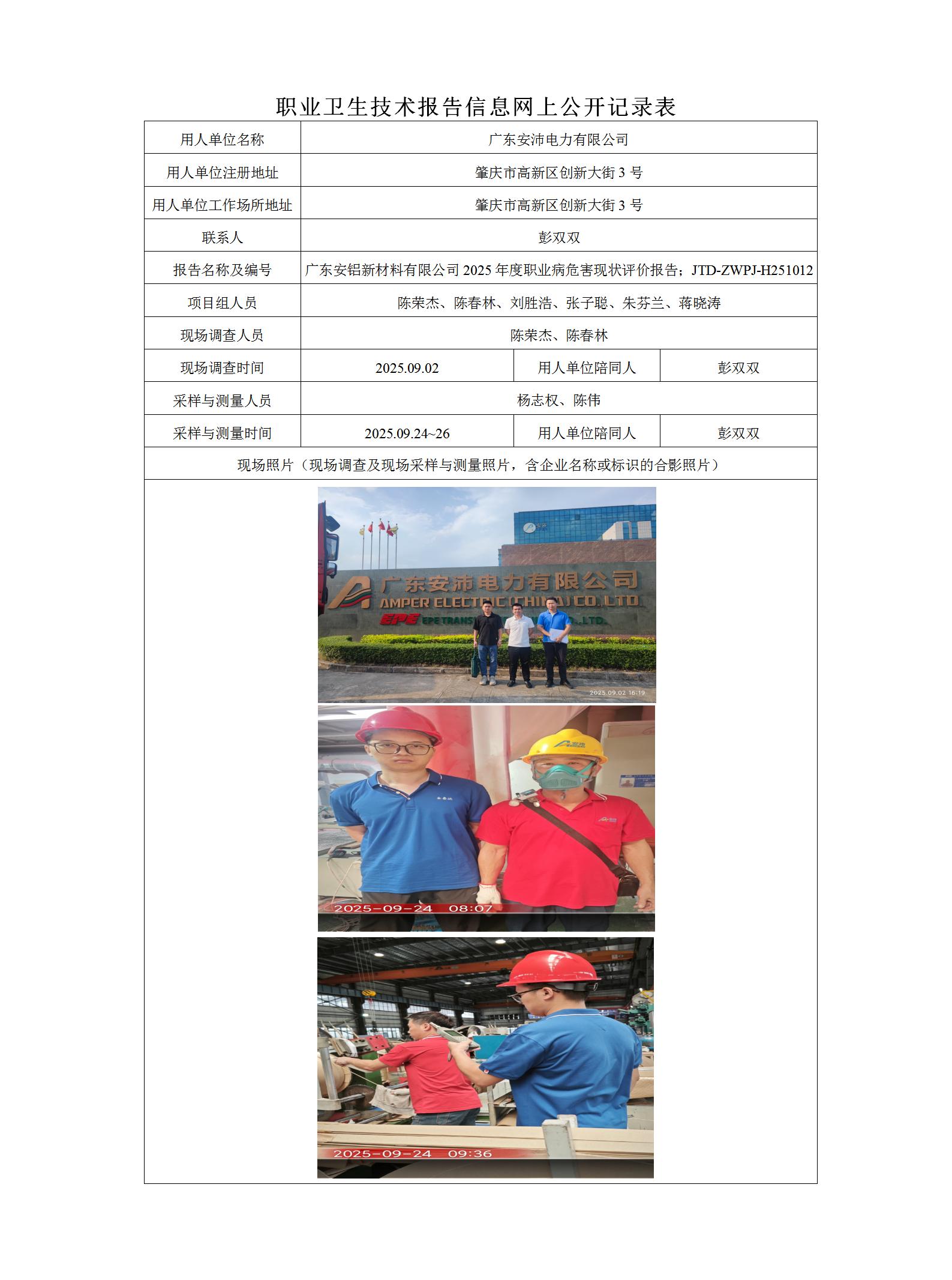 职业卫生-H251012广东安沛电力有限公司现状评价