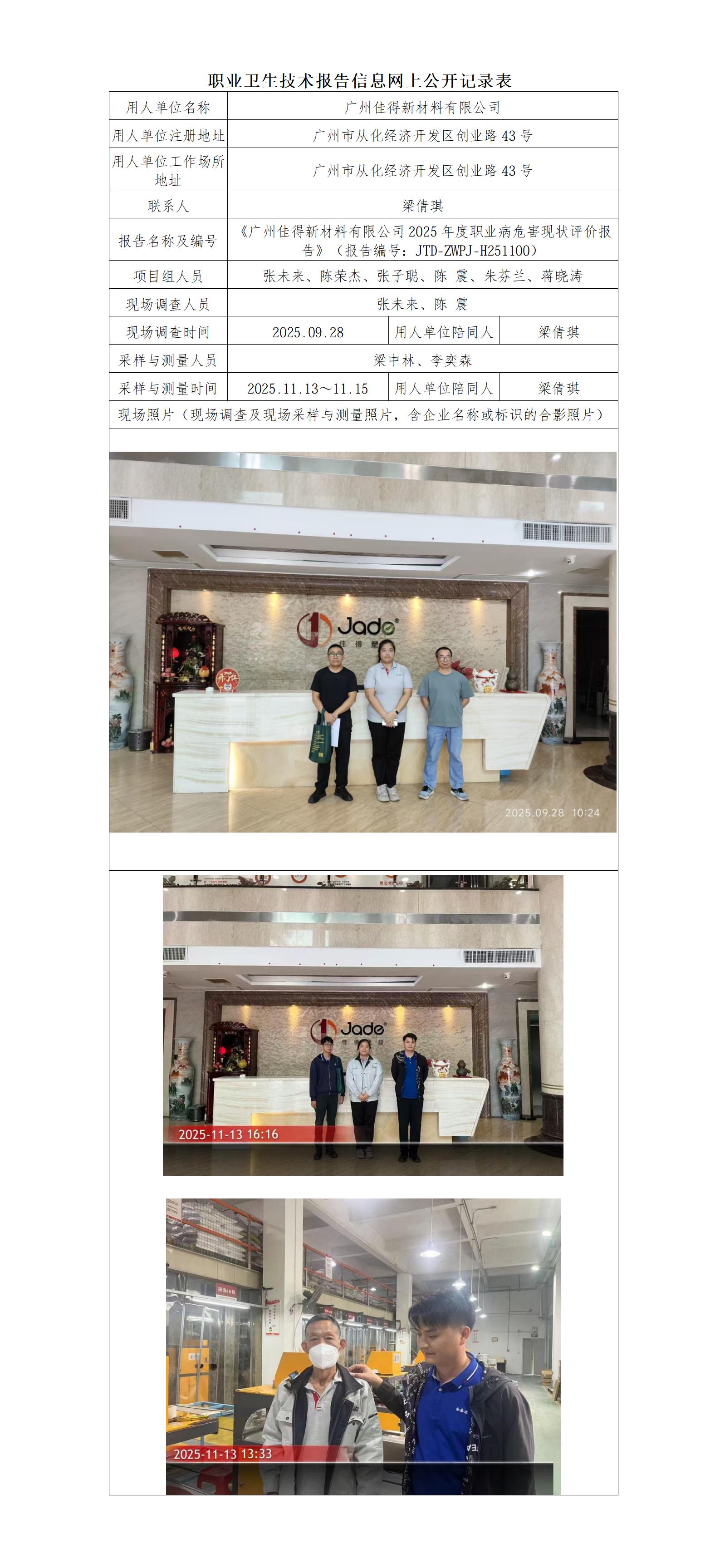 职业卫生-H251100广州佳得新材料有限公司2025年度职业病危害现状评价报告