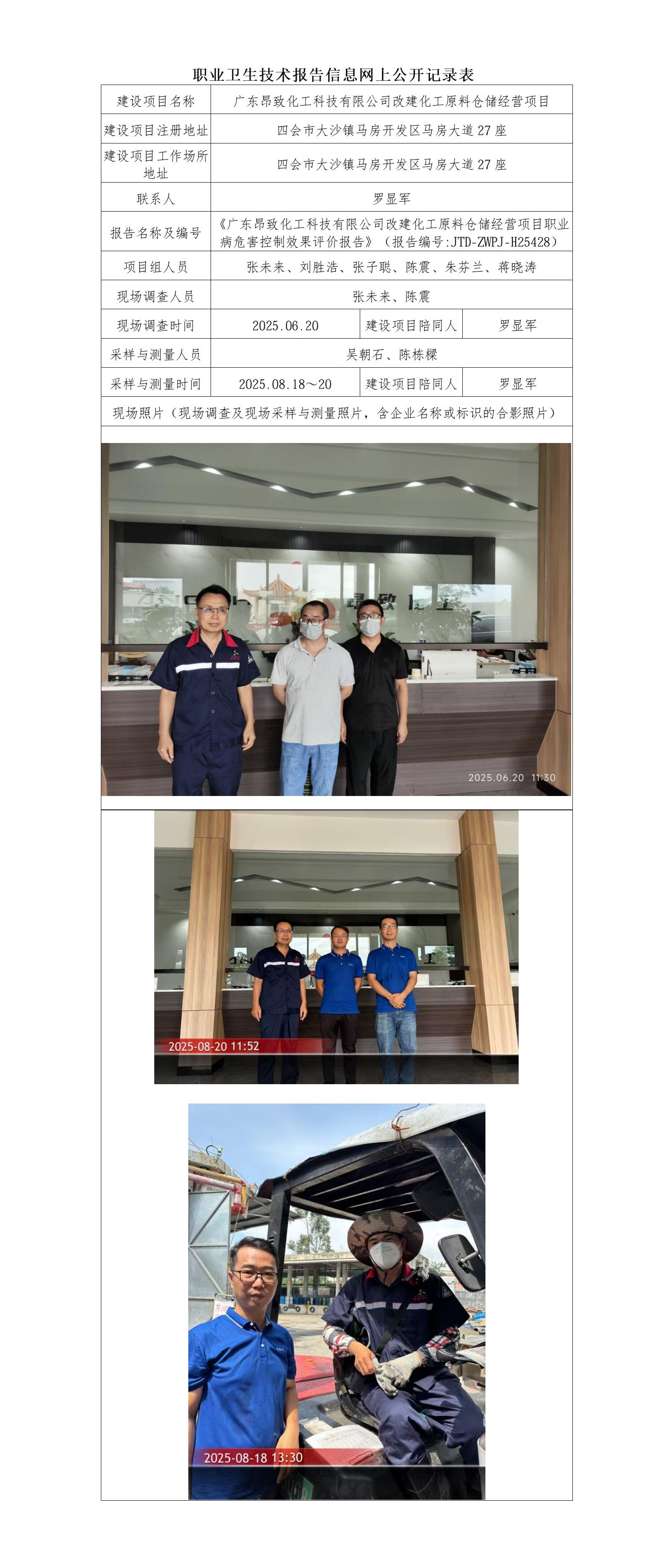 H25428广东昂致化工科技有限公司改建化工原料仓储经营项目职业病危害控制效果评价报告