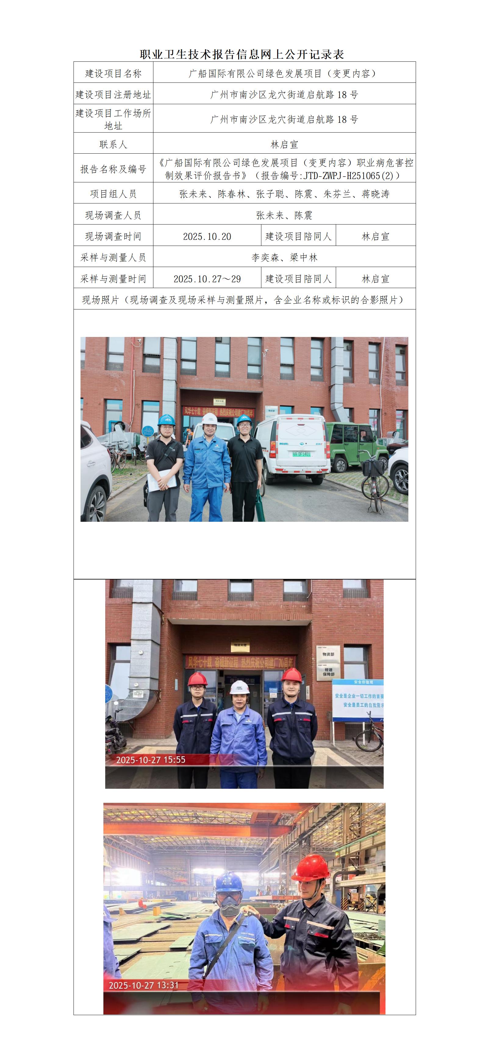 职业卫生-H251065(2)广船国际有限公司绿色发展项目(变更内容)职业病危害控制效果评价报告书