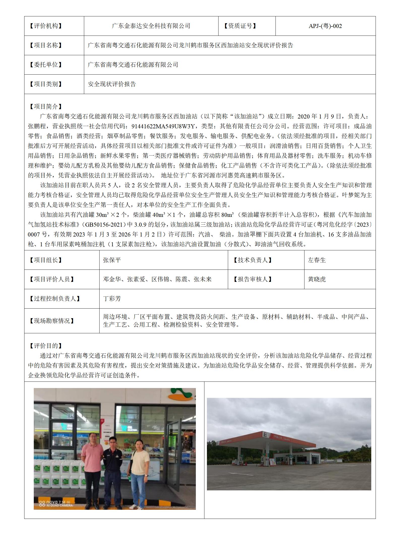 JTDG-AP2026-6广东省南粤交通石化能源有限公司龙川鹤市服务区西加油站安全现状评价报告
