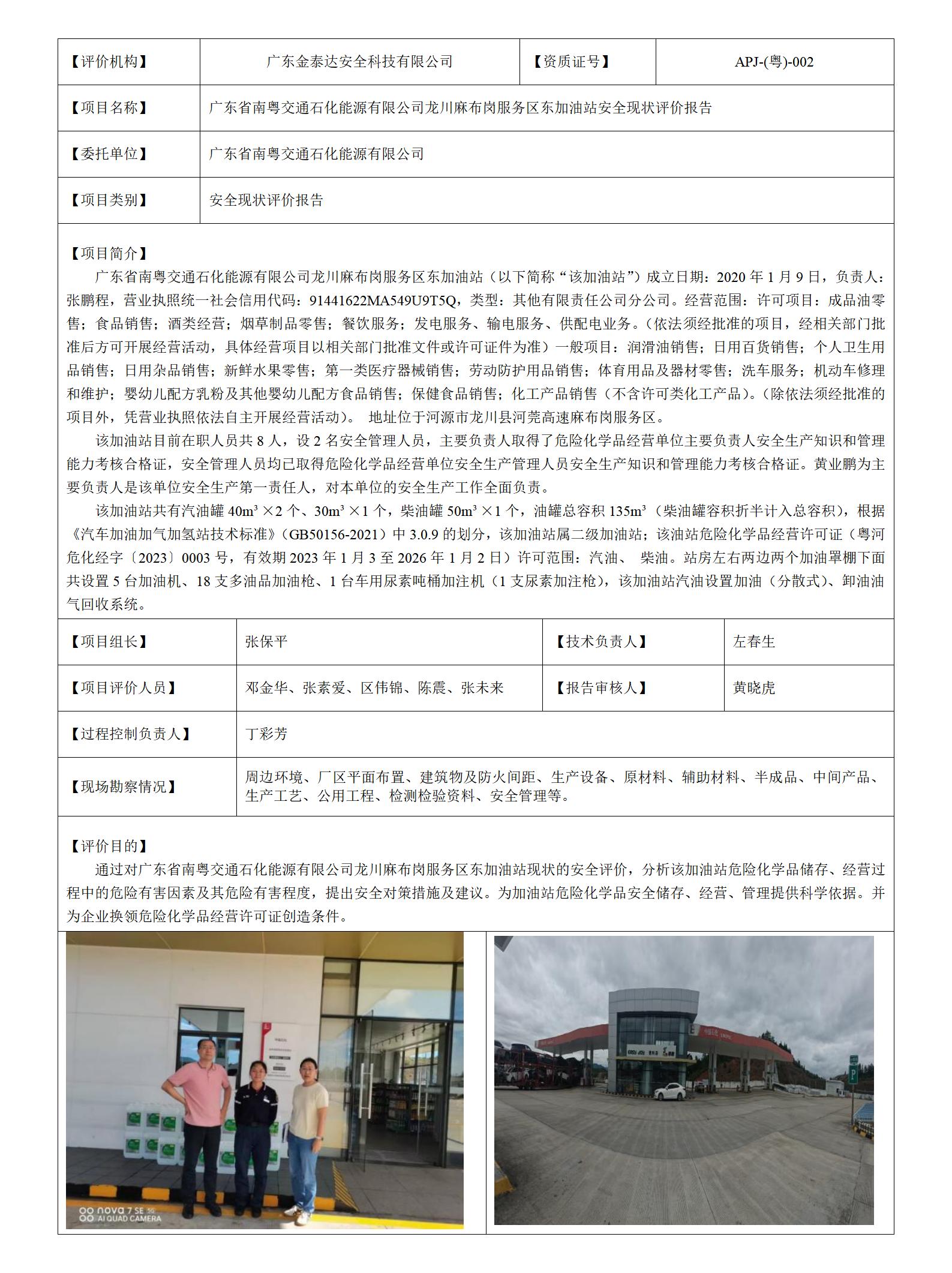 JTDG-AP2026-9广东省南粤交通石化能源有限公司龙川麻布岗服务区东加油站安全现状评价报告