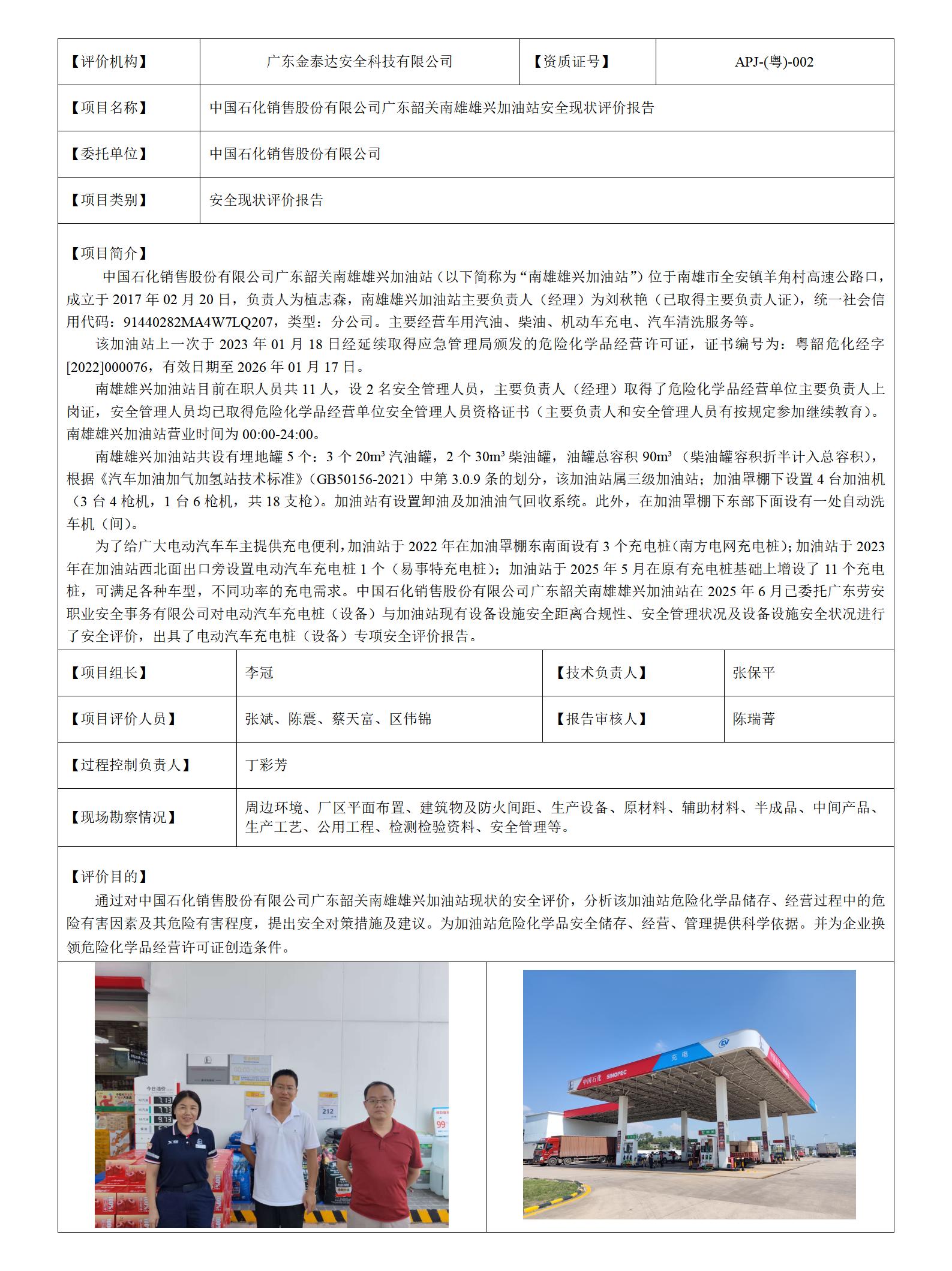 JTDG-AP2026-20中国石化销售股份有限公司广东韶关南雄雄兴加油站安全现状评价报告