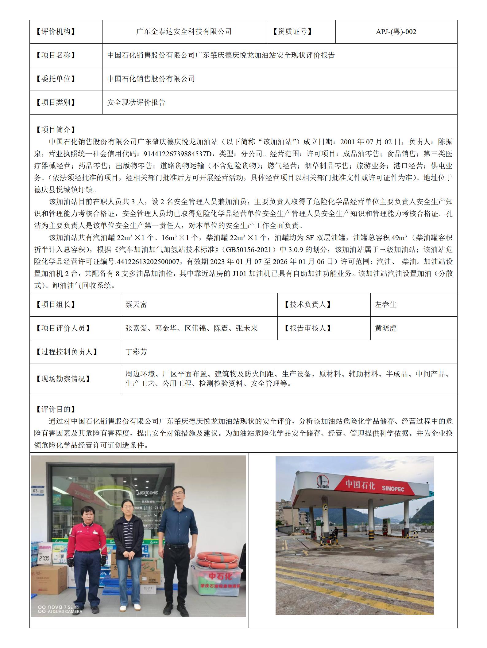 JTDG-AP2026-24中国石化销售股份有限公司广东肇庆德庆悦龙加油站安全现状评价报告