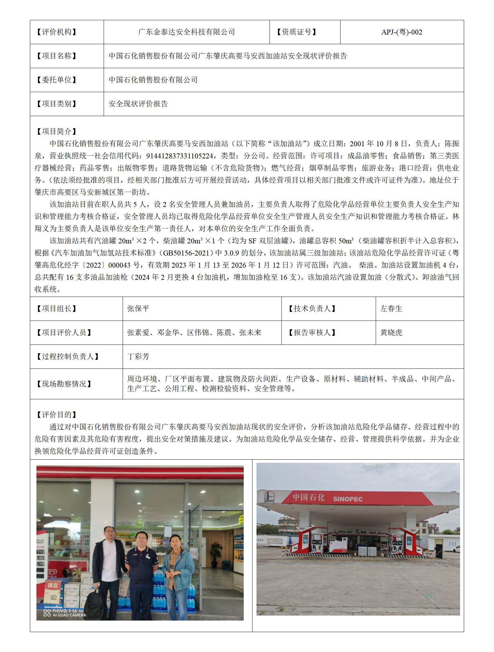 JTDG-AP2026-26中国石化销售股份有限公司广东肇庆高要马安西加油站安全现状评价报告
