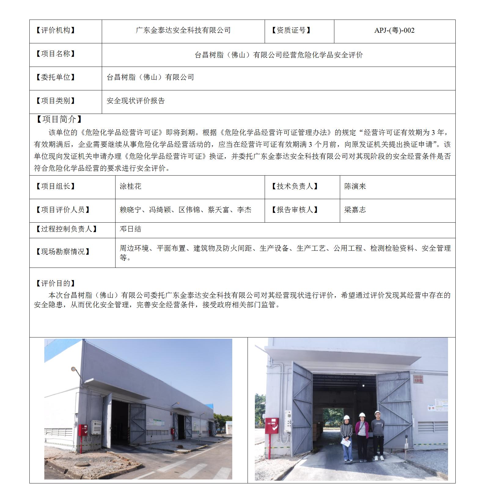H26063台昌树脂(佛山)有限公司经营危险化学品安全评价报告信息公开表