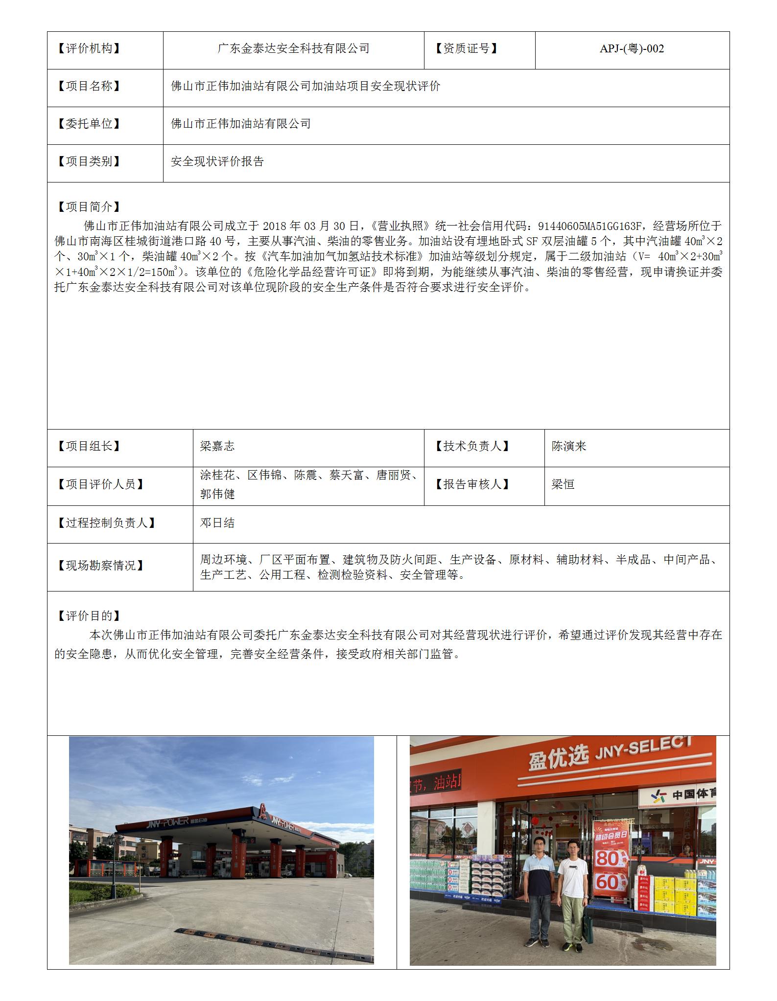 危化-JTDAP-H251046(2)佛山市正伟加油站有限公司加油站项目现状评价