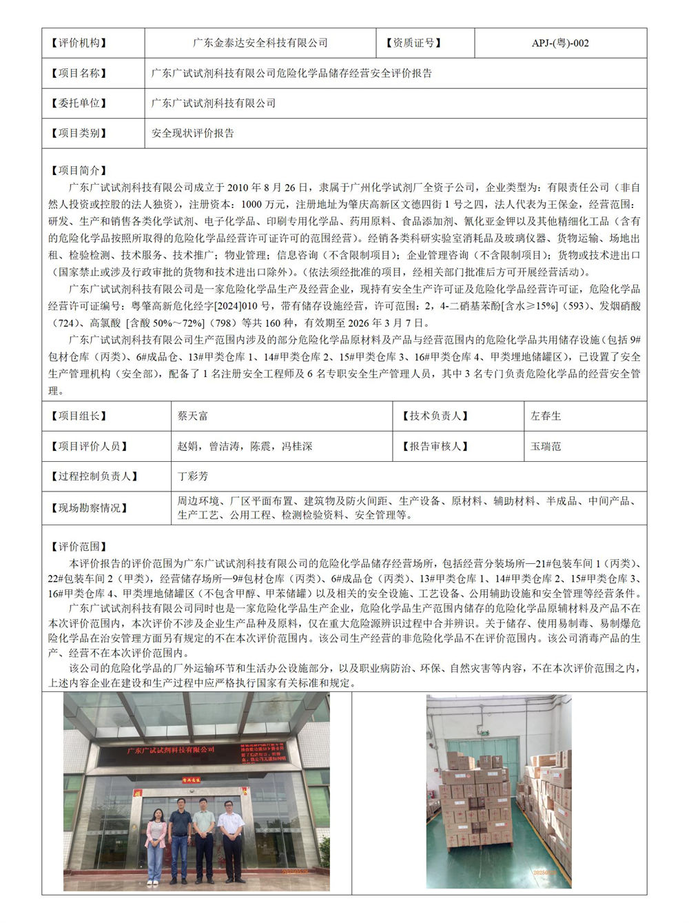 JTDG-AP2026-64广东广试试剂科技有限公司危险化学品储存经营安全评价报告