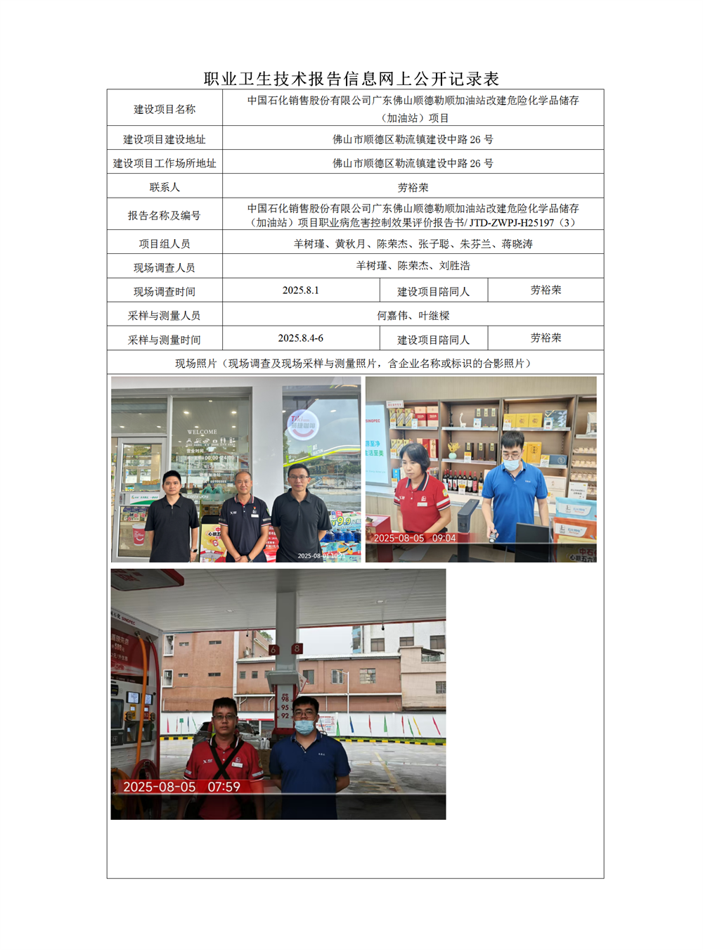 职业卫生-H25197(3)中国石化销售股份有限公司广东佛山顺德勒顺加油站改建危险化学品储存(加油站)项目控制效果评价公示( 2025.9.29)