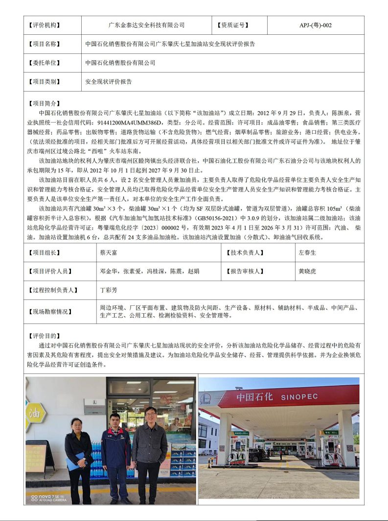 JTDG-AP2026-91中国石化销售股份有限公司广东肇庆七星加油站安全现状评价报告