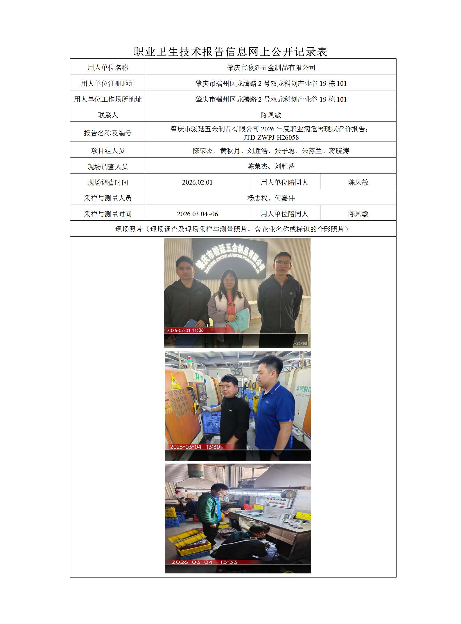 职业卫生-H26058肇庆市骏廷五金制品有限公司现状评价公示